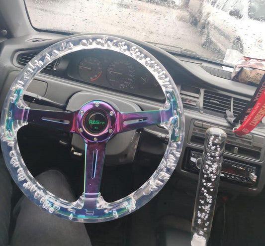 RASTP 14 Inch Acrylic Steering Wheel Transparent Deep Dish Steering Wheel with Horn