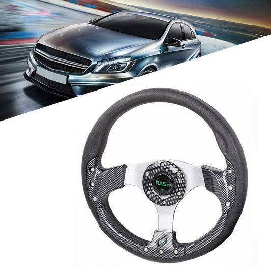 RASTP 13 Inch Racing Steering Wheel Drifting Deep Dish Steering Wheel Leather Wrap with Horn