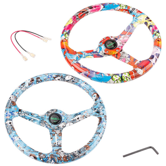RASTP 14Inch/350mm Acrylic Steering Wheel Graffiti Steering Wheel 6 Bolt with Horn