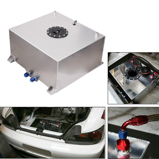 RASTP 18 Gallon 68L Race Fuel Cell Gas Tank with Cap & Level Sender Polished Aluminum