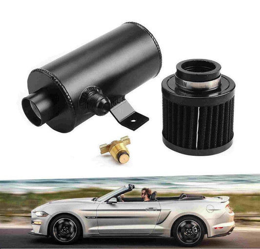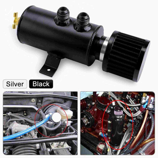 • RASTP Universal AN10 Aluminium Car Baffled Engine Oil Catch Can 750ml with Twin Port Breather Filter Kit Fuel Tank - RASTP