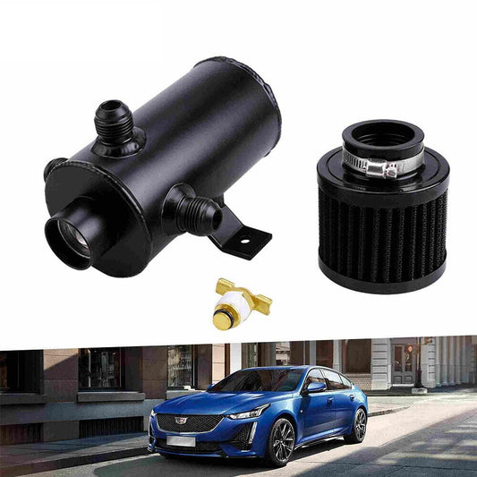 • RASTP Universal 240ml Aluminum Baffled Car Oil Catch Can Tank Separator Reservoir Oil Catch Tank with Drain Valve Breather - RASTP