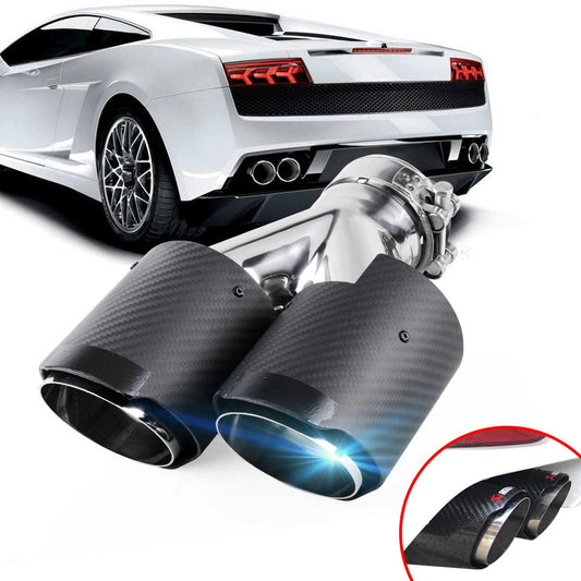 RASTP Universal Carbon Fiber Dual Exhaust Tip Double End Pipe Inlet 61mm Exhaust Tips for Volkswagen BMW Porsche